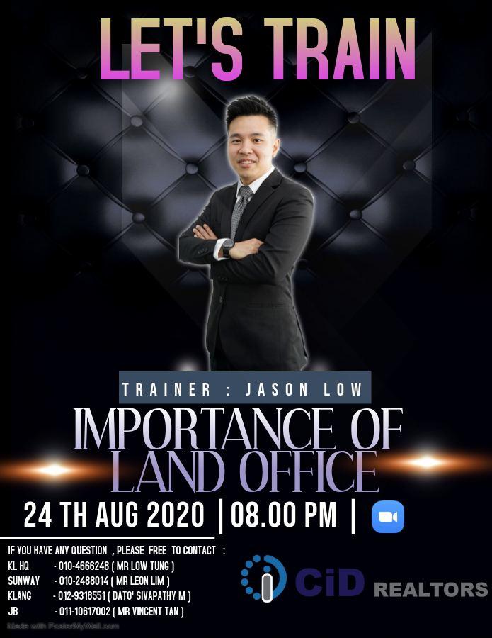 Topic: Importance of Land Office Speaker : Mr. Jason Low