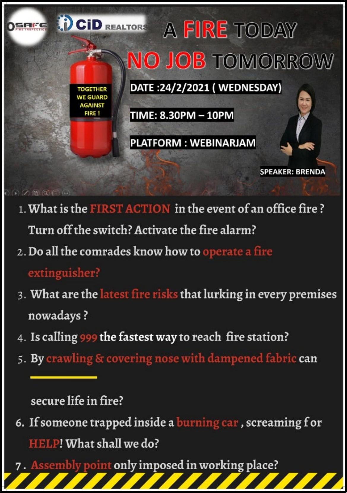 Topic: A Fire Today No Job TomorrowSpeaker : Ms. Brenda