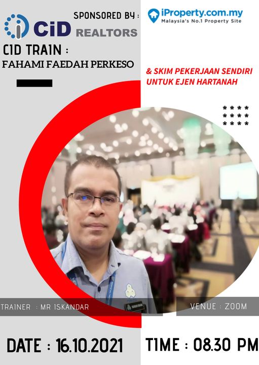 Topic: Cid Training - Fahami Faedah Perkeso & Skim Pekerjaan Sendiri Untuk Ejen HartanahSpeaker : Mr Iskandar