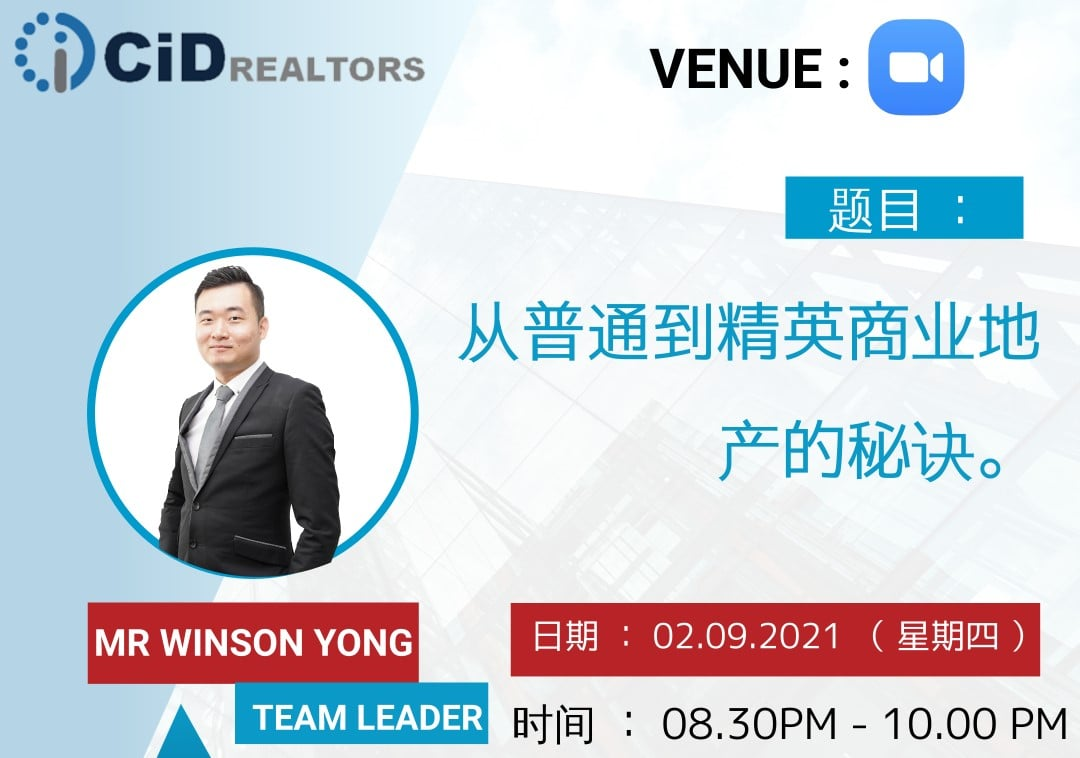 Topic: 从普通到精英商业地产的秘诀Speaker: Mr Winson Yong