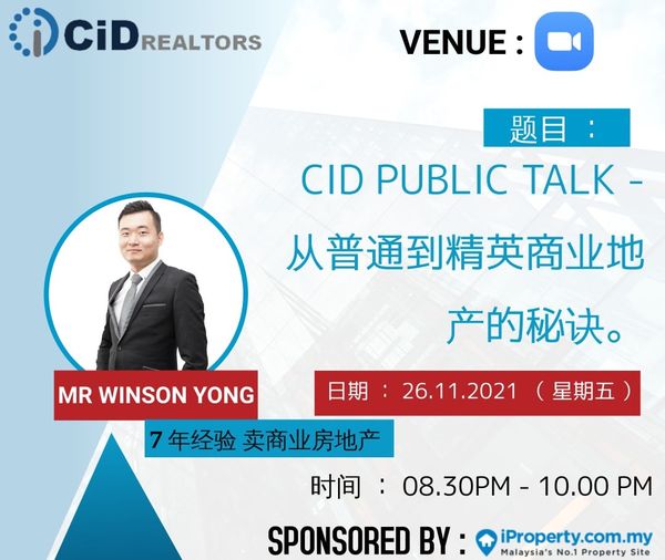 Topic: 普通到精英商业地产的秘诀 ?Trainer: Mr Winson Yong